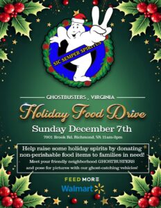 Join Ghostbusters, Virginia as we support Feedmore on December 7th from 11 to 3 at Walmart in Brook Road in Richmond Va. We’ll be on hand stuffing our ecto’s with food to help families in need this holiday... Read More